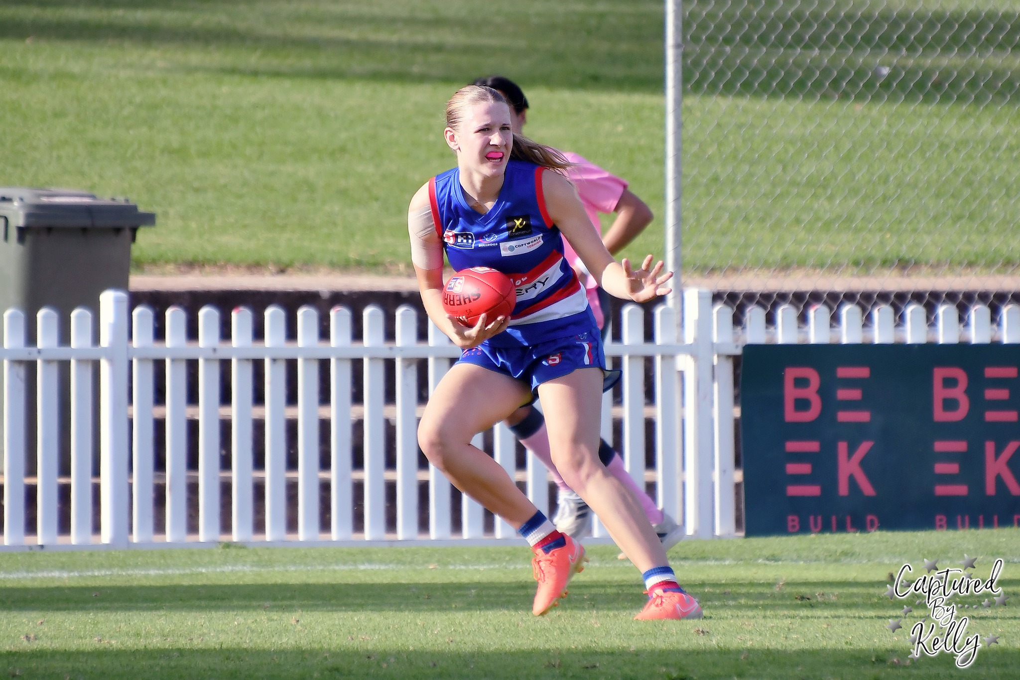 The younger sister of Jaide made her debut and had some lively moments. She took a couple of good marks, and though she was bumped off the ball a few times against stronger opponents, showed her nice sidestep on the wing during the second term to give off a clean handball. She competed hard and even kicked a goal on debut. Marking at half-back, she got a double 50m penalty thanks to her opponents encroaching and kicked it from just outside the goalsquare. Unfortunately sister Jaide was on the bench at the time and actually replaced Holly on the field, so had to wait for her to get to the bench to celebrate the moment.