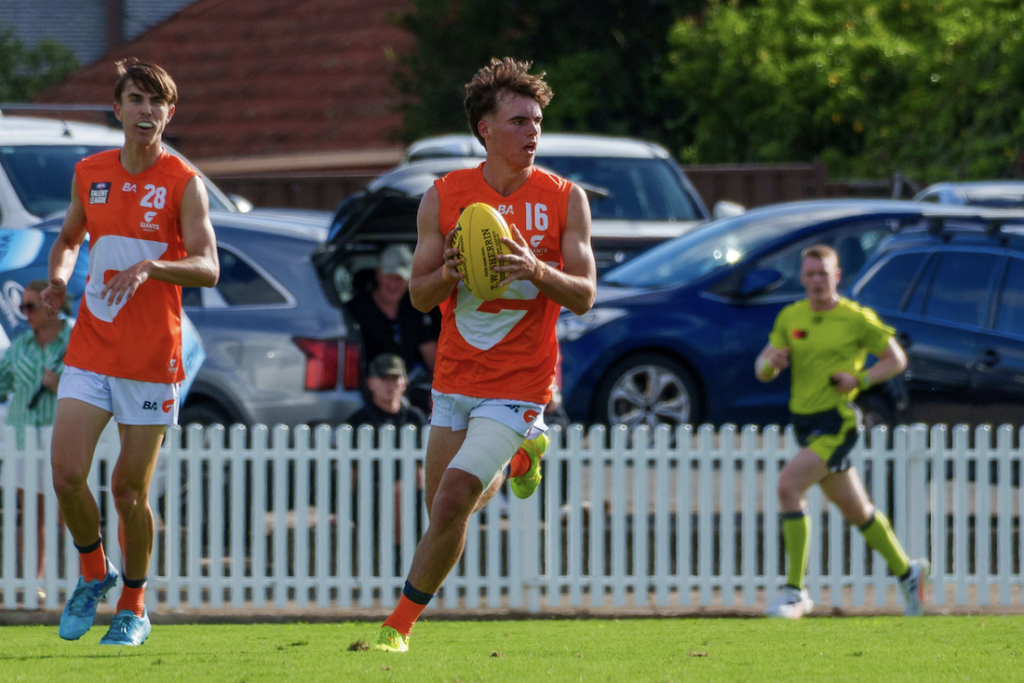 The Giants’ Under 16 MVP in 2024, Harper has also undergone much of his footballing education in Victoria with Xavier College and the Oakleigh Chargers. He played his usual role across the backline on Saturday, helping recover the ball and get it moving in the right direction. Harper distributed with minimal fuss and directed traffic on the way out, always making sound decisions under pressure.